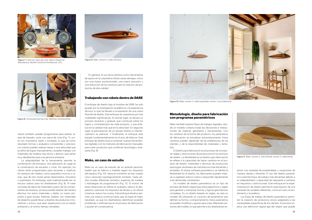A la publicació 19 s’hi analitza la col·laboració entre disseny i artesania moderna, destacant l’ús de noves tecnologies i materials avançats. També es tracta el paper de la fabricació robòtica i les eines digitals en la producció de mobles personalitzats. Alhora, es reflexiona sobre la convivència del disseny contemporani amb les tradicions artesanals.